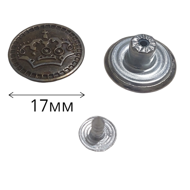 Кнопка-пуговица джинсовая 17мм *Корона* латунь (уп-ка 30шт)