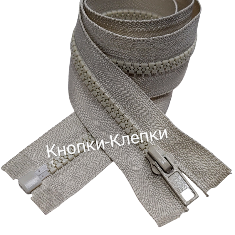 Тракторная молния состоит из отдельных пластиковых зубьев, прикрепленных к тесьме. Застежка способствует крепкому и надежному соединению деталей верхней одежды и др. изделий.