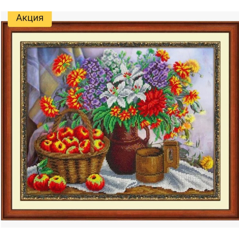 НАБОР ДЛЯ ВЫШИВАНИЯ БИСЕРОМ арт Б-1248 Яблоки и садовый букет