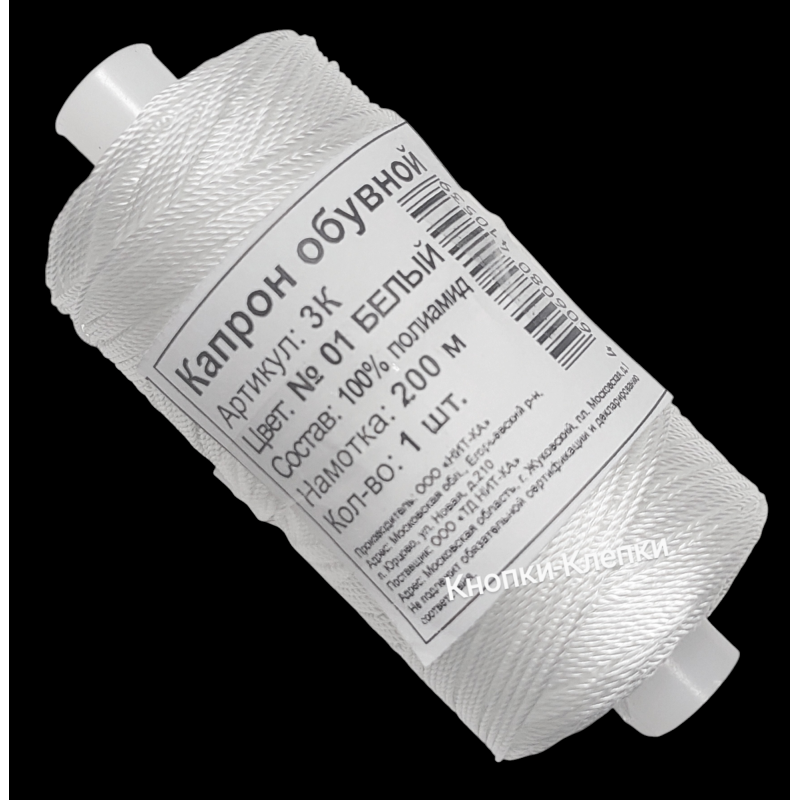Нитки капрон обувной 3К 200 м. (5 шт.) изготавливаются из высокопрочных полиамидных комплексных нитей, на них нанесены специальные составы, снижающие разогрев швейной нитки в игле, тем самым улучшаются их пошивочные свойства. Используются для: пошива обуви; кожгалантереи; полиграфии; сетевязания и технического назначения.