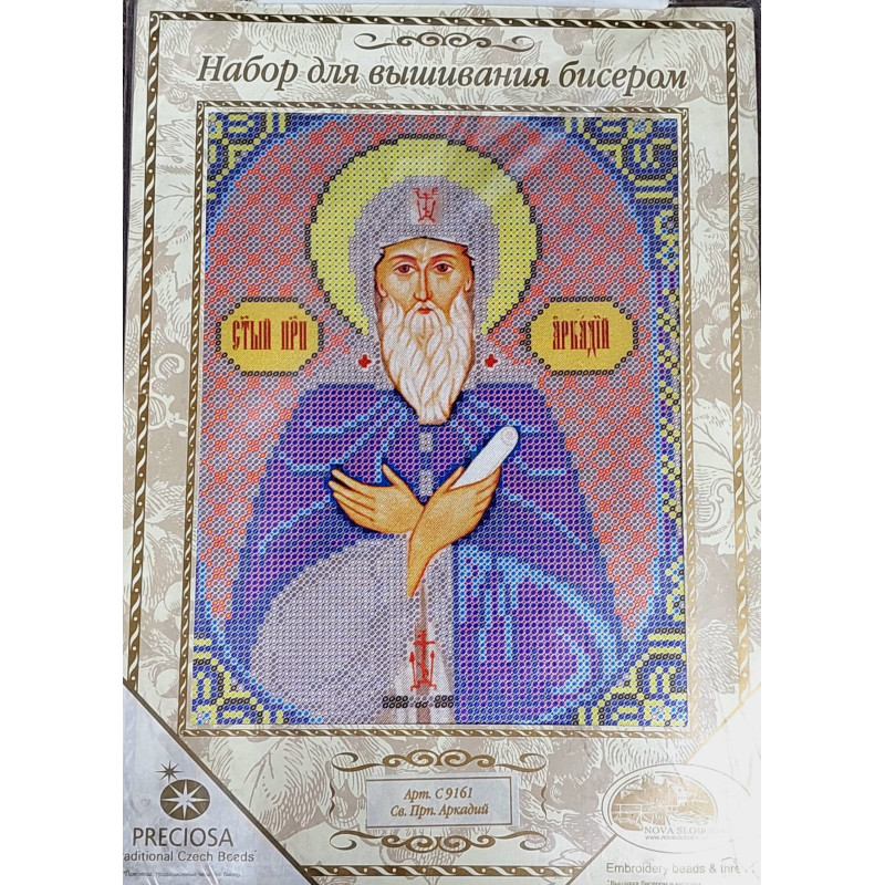Набор для вышивания "Новая Слобода" С 9161 "Св. Прп. Аркадий" 18х26 см. Набор для вышивания включает все, что необходимо для создания шедевра своими руками: бисер, ткань для вышивания с нанесенным рисунком-схемой, игла для вышивания бисером, инструкция.  Все материалы высокого качества, с которыми удобно работать, а результатом работы с которым - можно только наслаждаться. Заполнение: Частичное,Количество цветов: 8