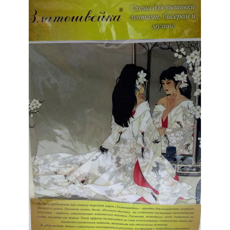 Торговая марка "Златошвейка"-принты для вышивания лентами,бисером и мулине.Применяя ленты,бисер,обьемную технику,вы создадите настоящие произведения искусства-картины,напоминающие живописные полотна.Растения,животные,люди,вышитые на ткани,выглядят как живые.Такой эффект достигается за счет использования специальных швов,выполняемых различными нитками,шелковыми или атласными лентами.