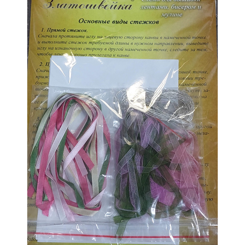 В набор входит: ткань с нанесенным полноцветным рисунком,инструкция с подробным описанием основных стежков лентами.