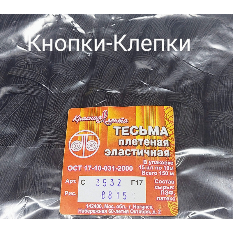 Резинка плетеная эластичная 7мм (уп 15шт -по 10м) черная