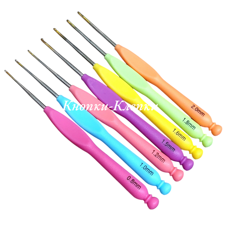 Набор тонких крючков ассорти с пластмассовой ручкой (уп.7шт) 0,8 -1,0 -1,2 -1,5 -1,6 -1,8 -2,0