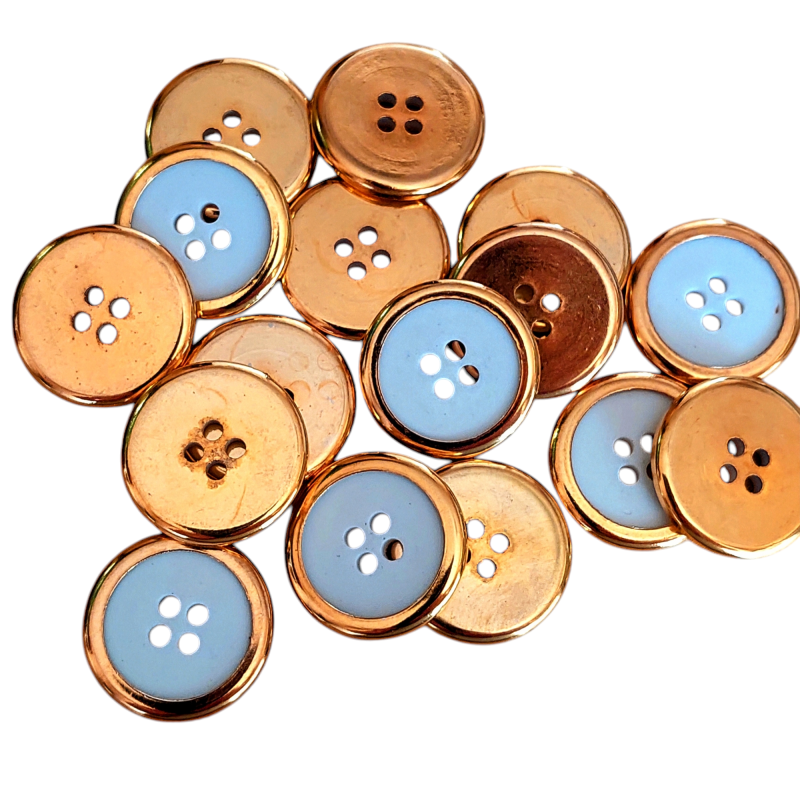 Пуговицы 4 прокола под металл белые с золотой окантовкой (23мм) в упаковке: 25шт